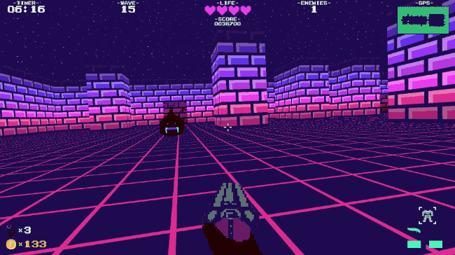 Virtual Wave is a fast paced retro styled wave based arena shooter where you blast enemies, collect cash and purchase upgrades to help you survive in 1980’s virtual world ruled by a corrupt AI (which you coded).