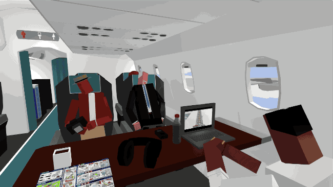 You can’t interact with anything in Vocus Air and there are no set goals, you just have to observe and try to piece together the narrative. Different characters will have conversations at different moments, and you can focus on them – causing the camera to zoom in a little and the background noise to be filtered out. There’s no set end point in Vocus Air, once you’re satisfied you’ve got to the bottom of what’s really going on in the plane you can simply quit to desktop, confident in your detective skills and glad to be away from that screaming kid!