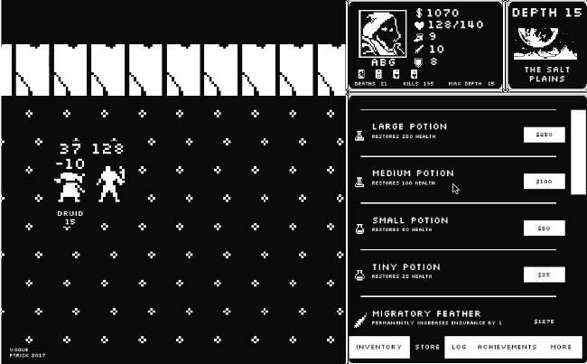 Vogue, a dungeon crawling incremental clicker made for the 1-Bit Jam, has you collecting treasure, defeating monsters, and tapping your way through a labyrinthine dungeon.