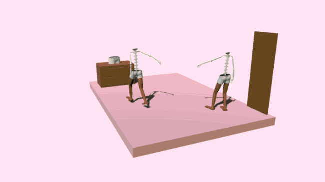 In Welcome To The Underwhere! you and your friend (or just you if you can operate a Brothers-style dual control scheme) each play a headless skeleton person with human legs and wearing underwear. These pairs of underwear are very plain – but you can change that! You can go to the dresser and customize the underwear using some pre-set colors and shapes. You can rotate, change the size of, and move the shapes around on the underwear to make it perfect. Once you have made a design you like, you can wear it and walk around the room showing it off.