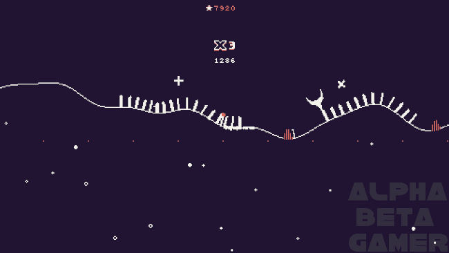 In this simplistic and stylish game, you are playing on ever-undulating ground. This ground is a thin white line, as it moves your character and the objects on the land move with it – all except the lava, which stays at the same level. This means that if the white (ground) line dips below a certain level, lava appears above ground. This lava, much like anything that is red in the game, will kill you if you touch it.