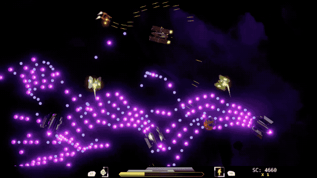 In Wirestrike you control a lone spaceship that must blast its way through waves of deadly enemies. There are no power-ups to collect but you do have four special abilities (two offensive and two defensive) which are on a cooldown and you also have the ability to grab asteroids or your enemies then swing them around your ship like a wrecking ball. This wrecking ball ability (dubbed the “Wirestrike”) really comes in handy as not only does it do significant damage to your enemies, but it also helps to clear the screen of bullets.