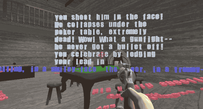 Words Must Die, a unique first person shooter and visual novel hybrid made for The Pippin Barr ‘GAME IDEA’ Game Jam has you shooting words as you choose your own western story!