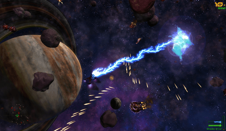 What makes this game truly special though, are the customisation options. You can build and paint your own ship to make it unique, then kit it out with a your own custom built weapons. There are hundreds of different weapons you can make by combining various components, including radioactive chainguns, tesla blasters, rocket propelled chainsaws and teleporting attack bears.